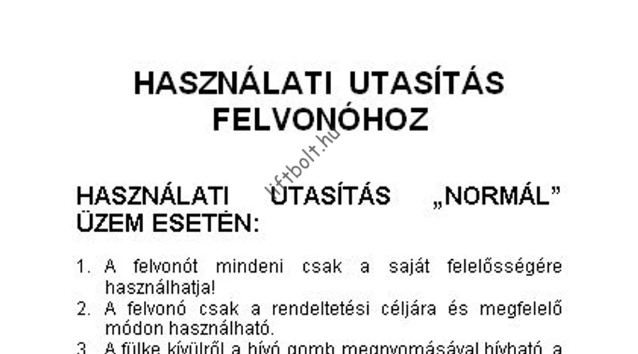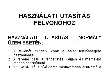 Általános használati utasítás tábla.